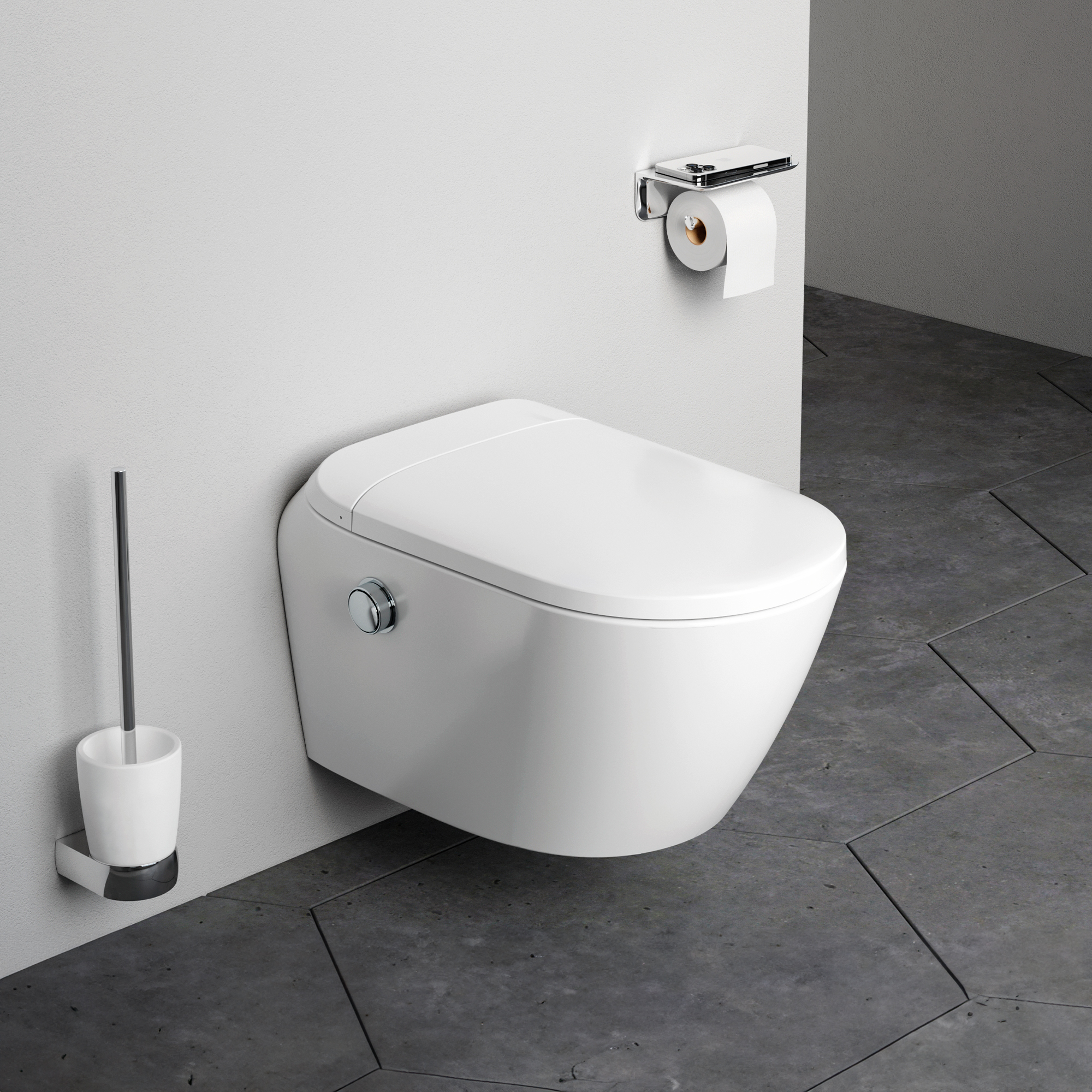 Характерная форма в стиле Dynamic Organic, вдохновленная природными органическими формами, доведенными до совершенства человеком, была разработана собственным агентством AM.PM в Германии. Теперь и с ультратонкой электронной крышкой-биде с технологией TouchReel.