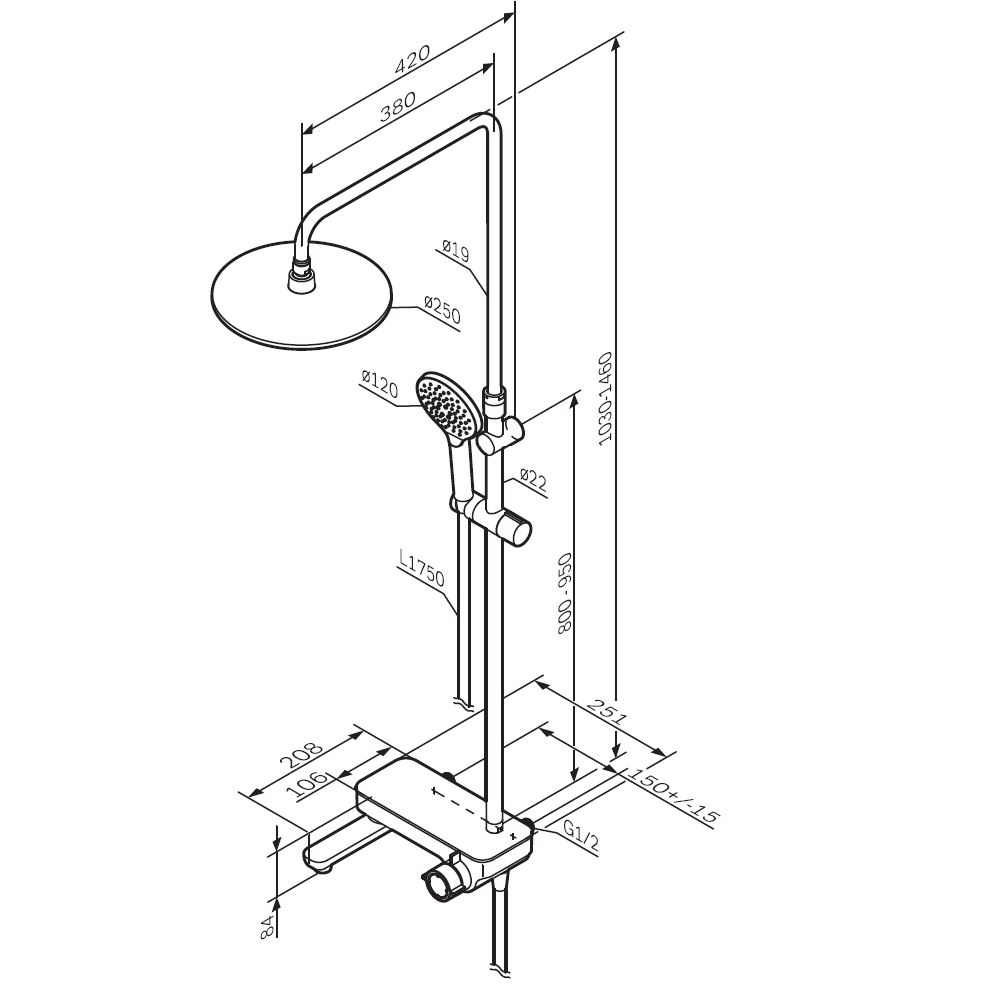 Размер верхнего душа